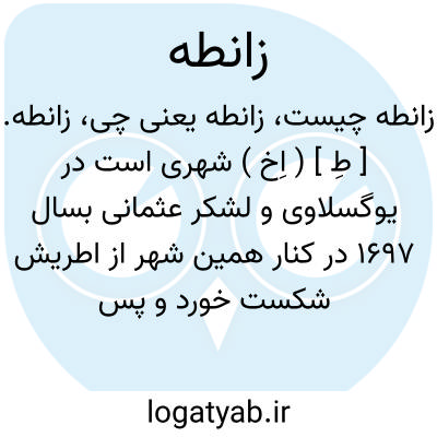 زانطه. [ طِ ] ( اِخ ) شهری است در یوگسلاوی و لشکر عثمانی بسال 1697 در کنار همین شهر از اطریش شکست خورد و پس از این شکست بود که نفوذ دولت عثمانی در بالکان رو به انحطاط نهاد. ( از ملحقات منجد اللغه ).
