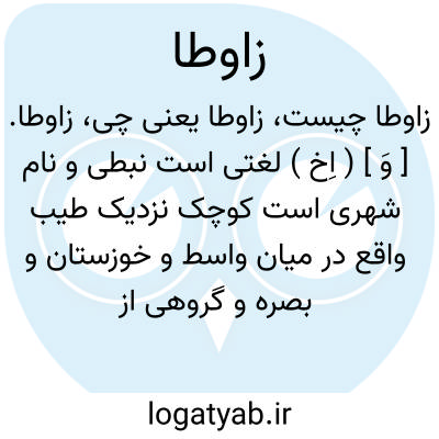 زاوطا. [ وَ ] ( اِخ ) لغتی است نبطی و نام شهری است کوچک نزدیک طیب واقع در میان واسط و خوزستان و بصره و گروهی از راویان بدان جا منسوب اند. ( از معجم البلدان ).