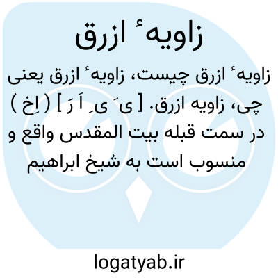 زاویه ازرق. [ ی َ ی ِ اَ رَ ] ( اِخ ) در سمت قبله بیت المقدس واقع و منسوب است به شیخ ابراهیم ازرق متوفی در 780 هَ. ق. این زاویه را زاویه سراتی نیز میگویند. ( از خطط الشام ج 6 ص 154 ). و رجوع به زاویه شود.