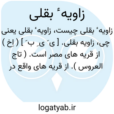 زاویه بقلی. [ ی َ ی ِ ب َ ] ( اِخ ) از قریه های مصر است. ( تاج العروس ). از قریه های واقع در منوفیه مصر است و بسیاری از رجال و خدمتگزاران علم از آن برخاسته اند. محمد علی پاشای حکیم، رئیس بیمارستان و مدرسه قصر عینی از آنجا است. ( از ملحقات المنجد ).