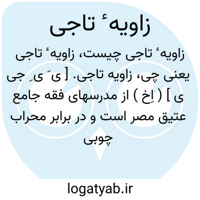 زاویه تاجی. [ ی َ ی ِ جی ی ] ( اِخ ) از مدرسهای فقه جامع عتیق مصر است و در برابر محراب چوبی قرار دارد. تاج الدین سطحی آن را تأسیس کرد و خانه هائی را در مصر وقف آن ساخت. ( از خطط مقریزی ج 4 ص 20 ). و رجوع به زاویه ( اطاق ) شود.