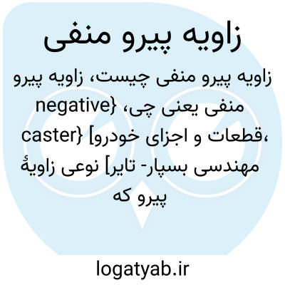 {negative caster} [قطعات و اجزای خودرو، مهندسی بسپار- تایر] نوعی زاویۀ پیرو که در آن محور یا سگدست در بالای چرخ به سمت جلو متمایل است