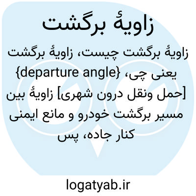 {departure angle} [حمل ونقل درون شهری] زاویۀ بین مسیر برگشت خودرو و مانع ایمنی کنار جاده، پس از برخورد با آن