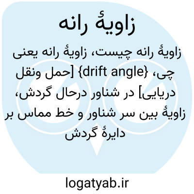 فرهنگستان زبان و ادب {drift angle} [حمل ونقل دریایی] در شناور درحال گردش، زاویۀ بین سر شناور و خط مماس بر دایرۀ گردش
