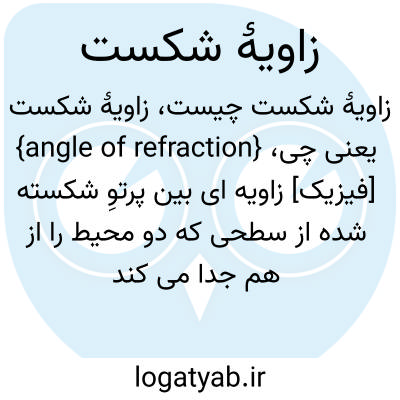 فرهنگستان زبان و ادب {angle of refraction} [فیزیک] زاویه ای بین پرتوِ شکسته شده از سطحی که دو محیط را از هم جدا می کند و خط عمود بر آن