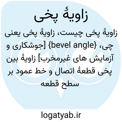{bevel angle} [جوشکاری و آزمایش های غیرمخرب] زاویۀ بین پخی قطعۀ اتصال و خط عمود بر سطح قطعه