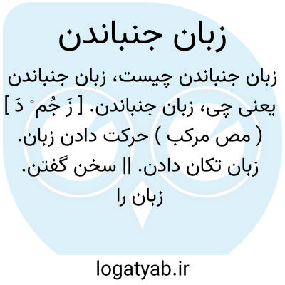 زبان جنباندن. [ زَ جُم ْ دَ ] ( مص مرکب ) حرکت دادن زبان. زبان تکان دادن. || سخن گفتن. زبان را برای سخن گفتن بحرکت درآوردن: