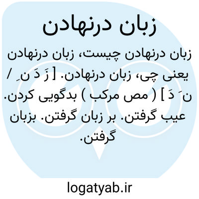 زبان درنهادن. [ زَ دَ ن ِ / ن َ دَ ] ( مص مرکب ) بدگویی کردن. عیب گرفتن. بر زبان گرفتن. بزبان گرفتن. در زبان گرفتن: