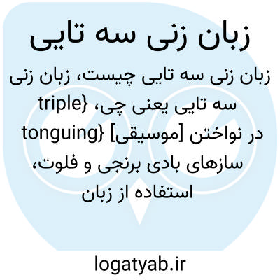 {triple tonguing} [موسیقی] در نواختن سازهای بادی برنجی و فلوت، استفاده از زبان برای ایجاد جمله بندی سریع که با استفاده از توالی واج های «ت ت ک» یا «ت - ک - ت»، یک جزء سه تایی به صورت منفرد یا مکرر، صورت می گیرد