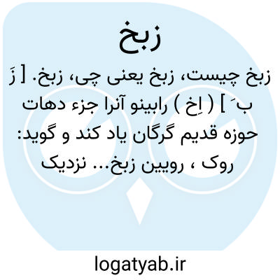 زبخ. [ زَ ب َ ] ( اِخ ) رابینو آنرا جزء دهات حوزه قدیم گرگان یاد کند و گوید: روک، رویین زبخ... نزدیک شهراند. ( ترجمه سفرنامه مازندران رابینوص 268 ). رجوع به متن انگلیسی آن سفرنامه ص 162 شود.