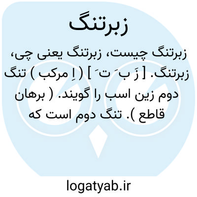 زبرتنگ. [ زَ ب َ ت َ ] ( اِ مرکب ) تنگ دوم زین اسب را گویند. ( برهان قاطع ). تنگ دوم است که بربالای اولین تنگ اسب کشند. ( انجمن آرا ). تنگ بالایی ( دوم ) حیوان سواری و باری. ( فرهنگ نظام ):