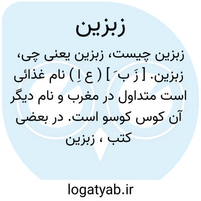 زبزین. [ زَ ب َ ] ( ع اِ ) نام غذائی است متداول در مغرب و نام دیگر آن کوس کوسو است. در بعضی کتب، زبزین بمعنی نان آمیخته با زعفران آمده است و برخی دیگر گویند نوعی راگو است که از فندق، گردو، عسل و نان میساخته اند و در آفریقا آنرا بزینه و یا بزین خوانند. و از غذاهای اصلی و اساسی اهالی مغرب بشمار میرود. ( از دزی ج 1 ص 579 ). || در مرکز مغرب، نام نوعی سوپ است که از آرد و شکر و کره درست می شود. ( از دزی ج 1 ص 679 ).
