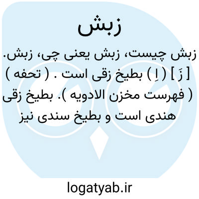 زبش. [ زَ ] ( اِ ) بطیخ زقی است. ( تحفه ) ( فهرست مخزن الادویه ). بطیخ زقی هندی است و بطیخ سندی نیز گویند. بپارسی خربزه هندی گویند و به تبریزی هندوانه و به شیرازی خیار کدو. و بهترین وی شیرین آبدار بود. طبیعت وی سرد و تر است. در دوم نافع بود. جهت مرضهای گرم و تبهای محرقه و مزاجهای گرم. تشنگی بنشاند و چون با سکنجبین بیاشامند بول براند. و مثانه بشوید و آب وی چون با قند بخورند تبرید زیاده کند و مضر بود پیران و مزاجهای سرد را. و خونی بد ازوی حاصل شود در جگر. و بلغم انگیزد. و مصلح وی قند بود یا عسل، یا با وی خورند یا بعد از وی. ( اختیارات بدیعی: بطیخ زقی ). رجوع به تحفه حکیم مؤمن شود.
