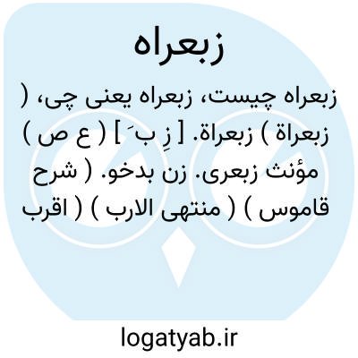 ( زبعراة ) زبعراة. [ زِ ب َ ] ( ع ص ) مؤنث زبعری. زن بدخو. ( شرح قاموس ) ( منتهی الارب ) ( اقرب الموارد ) ( ناظم الاطباء ) ( آنندراج ). || زبعراة؛ زن پرموی. ( تاج العروس ). مؤنث زبعری؛ آنکه بر روی و ابروان و اطراف دهان موی فراوان داشته باشد. ( از متن اللغه ). || زن درشت. ( منتهی الارب ) ( اقرب الموارد ) ( ناظم الاطباء ) ( آنندراج ) ( تاج العروس ). || اذن زبعراة؛ گوش سطبر بسیارموی. ( منتهی الارب ) ( اقرب الموارد ) ( ناظم الاطباء ). زبعراة؛ گوش سطبر بسیارموی. ( آنندراج ). اذن زبعراة؛ گوش درشت و پرموی را گویند. ازهری گوید: از خیل نیز گوش ستبر و پرموی را زبعراة گویند. ( تاج العروس ). اذن زبعراة؛ یعنی گوشی است ستبر بسیارمو. ( شرح قاموس ).