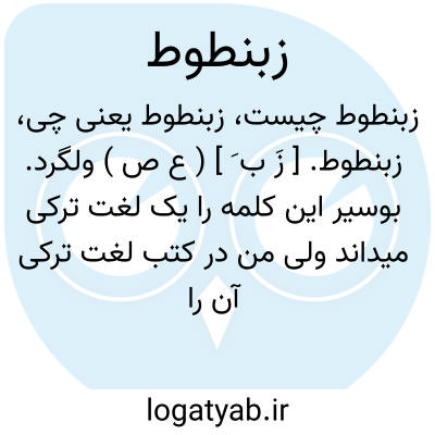 زبنطوط. [ زَ ب َ ] ( ع ص ) ولگرد. بوسیر این کلمه را یک لغت ترکی میداند ولی من در کتب لغت ترکی آن را نیافتم. در ایتالیایی کلمه اسباندیتو آمده است که معنی تبعید شده و ولگرد میدهد. ( از دزی ج 1 ص 581 ).