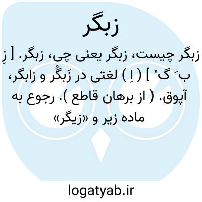 زبگر. [ زِ ب َ گ ُ ] ( اِ ) لغتی در زَبگُر و زابگر، آپوق. ( از برهان قاطع ). رجوع به ماده زیر و «زیگر» شود.