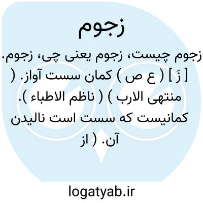 کما درت لحالبها الزجوم ( از لسان العرب ).|| ناقه ای که بانگ نمیکند. ( از متن اللغة ) ( از لسان العرب ). || باد ناله کننده در وزیدنست. ( ترجمه قاموس ).