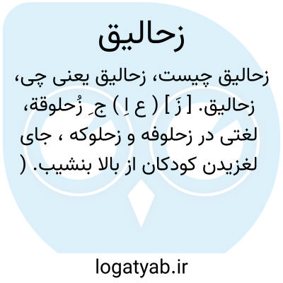 زحالیق. [ زَ ] ( ع اِ ) ج ِ زُحلوقة، لغتی در زحلوفه و زحلوکه، جای لغزیدن کودکان از بالا بنشیب. ( از منتهی الارب ). رجوع به زحلوقة، زحلوفة، زحالیف، زحالف، زحلوکه و زحالیک شود.