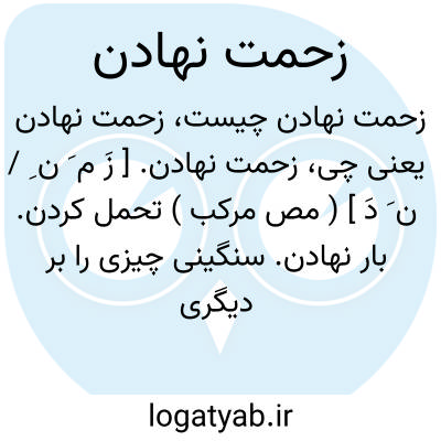 زحمت نهادن. [ زَ م َ ن ِ / ن َ دَ ] ( مص مرکب ) تحمل کردن. بار نهادن. سنگینی چیزی را بر دیگری گذاردن: