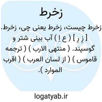 زخرط. [ زِ رِ ] ( ع اِ ) آب بینی شتر و گوسپند. ( منتهی الارب ) ( ترجمه قاموس ) ( از لسان العرب ) ( اقرب الموارد ). || آب دهن شتر و گوسپند. ( از منتهی الارب ). لعاب شتر و گوسفند. ( از ترجمه قاموس ) ( از متن اللغة ) ( از محیط المحیط ) ( از لسان العرب ) ( از اقرب الموارد ). || نوعی از گیاه. ( منتهی الارب ) ( از متن اللغة ) ( از محیط المحیط ) ( از اقرب الموارد ). زخرط. [ زِ رِ ] ( ع ص ) ناقه پیر. ( از متن اللغة ).