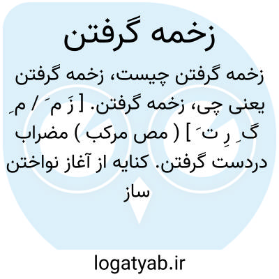 زخمه گرفتن. [ زَ م َ / م ِ گ ِ رِ ت َ ] ( مص مرکب ) مضراب دردست گرفتن. کنایه از آغاز نواختن ساز کردن. شروع بنوازندگی کردن: شراب خواست و بیاوردند و مطربان زخمه گرفتند و نشاط بالا گرفت. ( تاریخ بیهقی ).