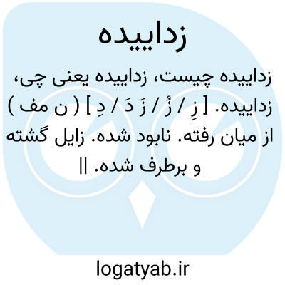 زداییده. [ زِ / زُ / زَ دَ / دِ ] ( ن مف ) از میان رفته. نابود شده. زایل گشته و برطرف شده. || جلا یافته. صیقلی شده. پاک شده. صفا یافته.