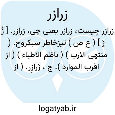 زرازر. [ زُ زَ ] ( ع ص ) تیزخاطر سبکروح. ( منتهی الارب ) ( ناظم الاطباء ) ( از اقرب الموارد ). ج، زَرازِر. ( از اقرب الموارد ).