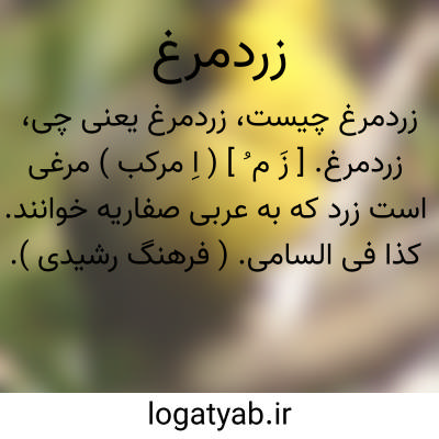 زردمرغ. [ زَ م ُ ] ( اِ مرکب ) مرغی است زرد که به عربی صفاریه خوانند. کذا فی السامی. ( فرهنگ رشیدی ).