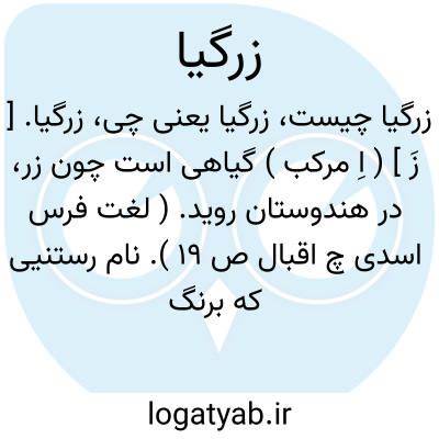 زرگیا. [ زَ ] ( اِ مرکب ) گیاهی است چون زر، در هندوستان روید. ( لغت فرس اسدی چ اقبال ص 19 ). نام رستنیی که برنگ زرد باشد. ( آنندراج ). گیاهی هندی و طلایی رنگ. ( ناظم الاطباء ). زرگیاه. قارچهای ذره بینی به رنگ زرد که بر سنگ و آجر و پوست درخت و دیگر چیزها روید. ( یادداشت بخط مرحوم دهخدا ):