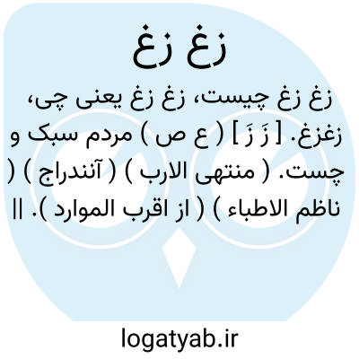 زغزغ. [ زَ زَ ] ( ع ص ) مردم سبک و چست. ( منتهی الارب ) ( آنندراج ) ( ناظم الاطباء ) ( از اقرب الموارد ). || تهمت کرده در حسب و نسب. ( از اقرب الموارد ).