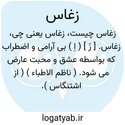 زغاس. [ زَ ] ( اِ ) بی آرامی و اضطراب که بواسطه عشق و محبت عارض می شود. ( ناظم الاطباء ) ( از اشتنگاس ).