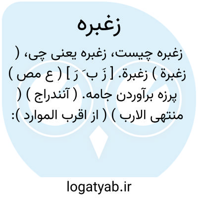 ( زغبرة ) زغبرة. [ زَ ب َ رَ ] ( ع مص ) پرزه برآوردن جامه. ( آنندراج ) ( منتهی الارب ) ( از اقرب الموارد ): زغبرالثوب زغبرة؛ پرزه برآورد آن جامه. ( ناظم الاطباء ).