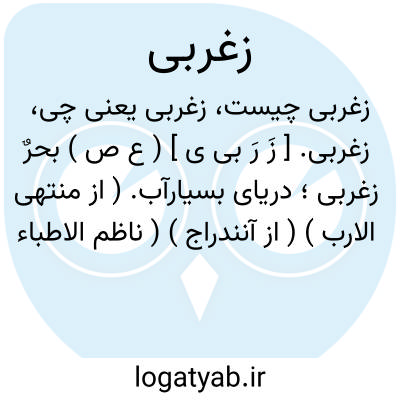 زغربی. [ زَ رَ بی ی ] ( ع ص ) بحرٌ زغربی؛ دریای بسیارآب. ( از منتهی الارب ) ( از آنندراج ) ( ناظم الاطباء ) ( از اقرب الموارد ). رجوع به زغرب، زغربة و زغربیة شود.