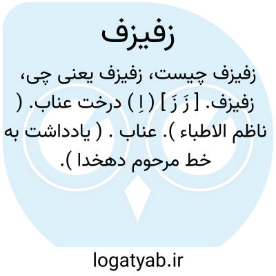 لغت نامه دهخدا زفیزف. [ زَ زَ ] ( اِ ) درخت عناب. ( ناظم الاطباء ). عناب. ( یادداشت به خط مرحوم دهخدا ).