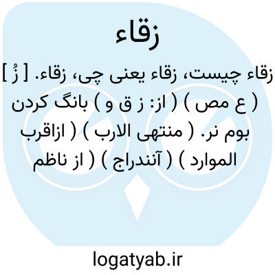 زقاء. [ زُ ] ( ع اِ ) ( از: ز ق ی ) بانگ و فریاد یا بانگ بوم. ( منتهی الارب )( آنندراج ) ( ناظم الاطباء ). رجوع به ماده قبل شود.