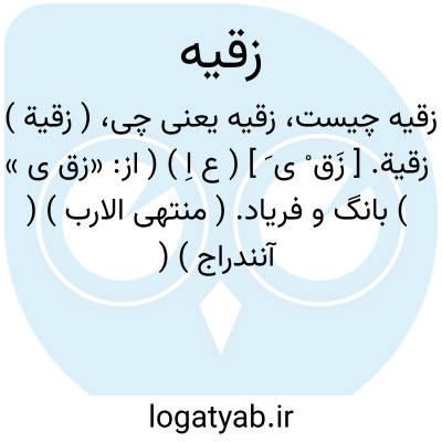 ( زقیة ) زقیة. [ زَق ْ ی َ ] ( ع اِ ) ( از: «زق ی » ) بانگ و فریاد. ( منتهی الارب ) ( آنندراج ) ( ناظم الاطباء ).