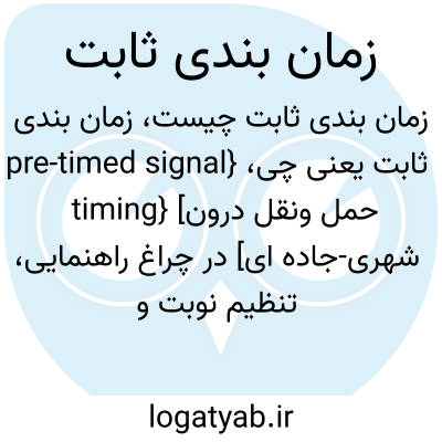 {pre-timed signal timing} [حمل ونقل درون شهری-جاده ای] در چراغ راهنمایی، تنظیم نوبت و مدت حرکت وسایل نقلیه و عابران در هریک از انشعاب های یک تقاطع به صورت خودکار و ازپیش تعیین شده