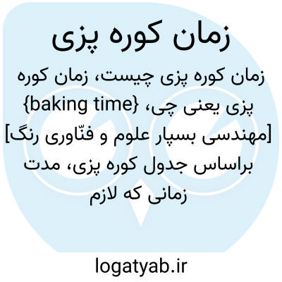 {baking time} [مهندسی بسپار علوم و فنّاورى رنگ] براساس جدول کوره پزی، مدت زمانی که لازم است تا در دمای مشخص، فیلم (film ) پخته یا خشک شده ای با خواص مطلوب حاصل شود