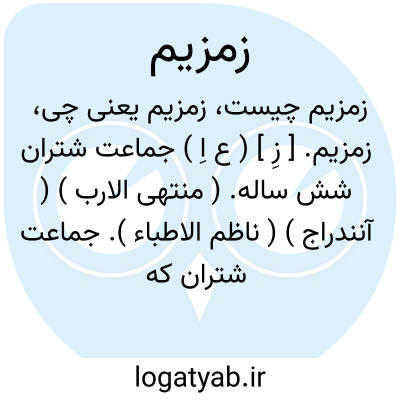 زمزیم. [ زِ ] ( ع اِ ) جماعت شتران شش ساله. ( منتهی الارب ) ( آنندراج ) ( ناظم الاطباء ). جماعت شتران که در آن شتران کوچک نباشد. ج، زَمازِم. ( از اقرب الموارد ).
