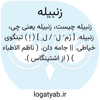 زنبیله. [ زَم ْ ل َ / ل ِ ] ( اِ ) تبنگوی خیاطی. || جامه دان. ( ناظم الاطباء ) ( از اشتینگاس ).