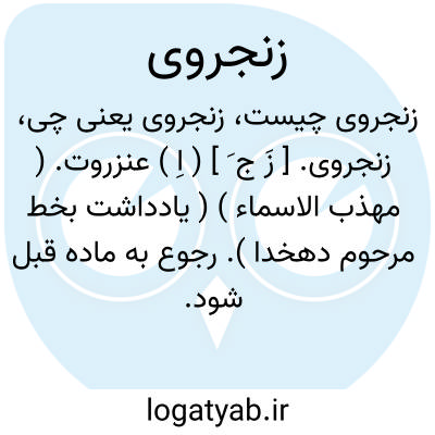 لغت نامه دهخدا زنجروی. [ زَ ج َ ] ( اِ ) عنزروت. ( مهذب الاسماء ) ( یادداشت بخط مرحوم دهخدا ). رجوع به ماده قبل شود.