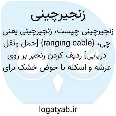 {ranging cable} [حمل ونقل دریایی] ردیف کردن زنجیر بر روی عرشه و اسکله یا حوض خشک برای لنگراندازی در عمق زیاد یا معاینه و بررسی حلقه های زنجیر