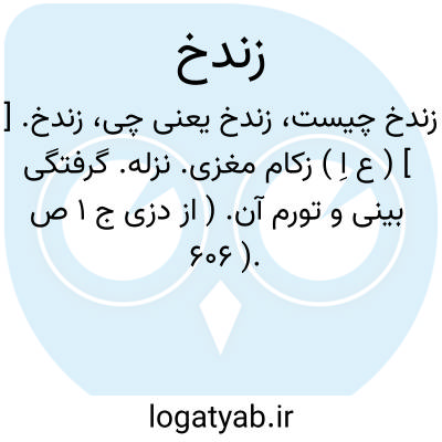 زندخ. [ ] ( ع اِ ) زکام مغزی. نزله. گرفتگی بینی و تورم آن. ( از دزی ج 1 ص 606 ).