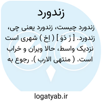 زندورد. [ زَ دَوَ ] ( اِخ ) شهری است نزدیک واسط، حالا ویران و خراب است. ( منتهی الارب ). رجوع به معجم البلدان شود. || ناحیه ای است در اواخر عراق. ( منتهی الارب ).