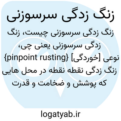 {pinpoint rusting} [خوردگی] نوعی زنگ زدگی نقطه نقطه در محل هایی که پوشش و ضخامت و قدرت محفاظت کنندگی کافی وجود ندارد