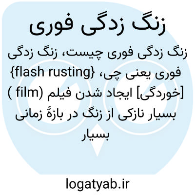 {flash rusting} [خوردگی] ایجاد شدن فیلم (film ) بسیار نازکی از زنگ در بازۀ زمانی بسیار کوتاه، از چند دقیقه تا چند ساعت، بر سطح فلز در محیط مرطوب
