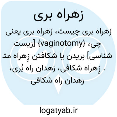{vaginotomy} [زیست شناسی] بریدن یا شکافتن زِهراه متـ. زِهراه شکافی، زهدان راه بُری، زهدان راه شکافی