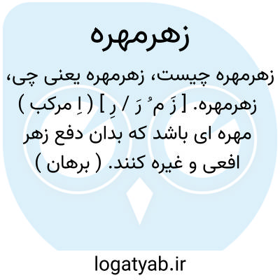 زهرمهره. [ زَ م ُ رَ / رِ ] ( اِ مرکب ) مهره ای باشد که بدان دفع زهر افعی و غیره کنند. ( برهان ) ( ناظم الاطباء ). مهره ای که بدان زهر دفع کنند. ( فرهنگ رشیدی ). مهره ای که بدان علاج زهر کنند و آن را زهرکش نیز خوانند. ( انجمن آرا ) ( از آنندراج ). سنگ پازهر. ( ناظم الاطباء ).