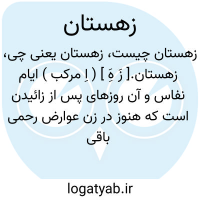 زهستان.[ زَ هَِ ] ( اِ مرکب ) ایام نفاس و آن روزهای پس از زائیدن است که هنوز در زن عوارض رحمی باقی باشد. ( ناظم الاطباء ). رجوع به لسان العجم شعوری ج 2 ص 45 شود.