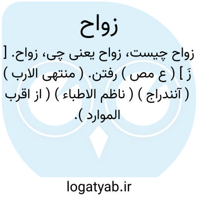 لغت نامه دهخدا زواح. [ زَ ] ( ع مص ) رفتن. ( منتهی الارب ) ( آنندراج ) ( ناظم الاطباء ) ( از اقرب الموارد ).